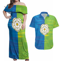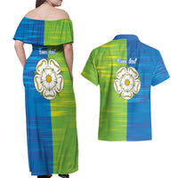 Yorkshire Heritage Personalized Couples Matching Off Shoulder Maxi Dress and Hawaiian Shirt East Yorkshire White Rose