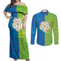 Yorkshire Heritage Personalized Couples Matching Off Shoulder Maxi Dress and Long Sleeve Button Shirt East Yorkshire White Rose LT9