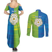 Yorkshire Heritage Personalized Couples Matching Summer Maxi Dress and Long Sleeve Button Shirt East Yorkshire White Rose LT9