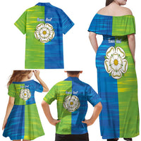 Yorkshire Heritage Personalized Family Matching Off Shoulder Maxi Dress and Hawaiian Shirt East Yorkshire White Rose