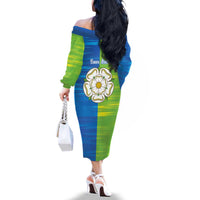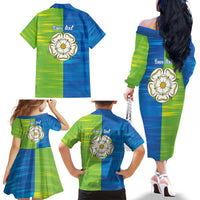Yorkshire Heritage Personalized Family Matching Off The Shoulder Long Sleeve Dress and Hawaiian Shirt East Yorkshire White Rose LT9