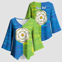 Step into effortless style with the Yorkshire Heritage Personalized Kimono Sleeve Blouse East Yorkshire White Rose by Wonder Print Shop. Perfect for work, brunch, or a casual night out.