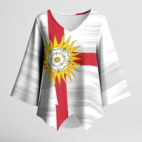 Add a chic touch to your wardrobe with the Yorkshire Heritage Personalized Kimono Sleeve Blouse West Yorkshire White Rose from Wonder Print Shop. Designed for versatility, this V-neck blouse features flowing kimono-style sleeves and a relaxed fit — perfect for both casual and dressy occasions. Crafted with premium polyester fabric, it offers a soft, lightweight feel for all-day comfort.