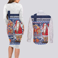 Yule Goat Joulupukki Finnish Christmas Couples Matching Long Sleeve Bodycon Dress and Long Sleeve Button Shirt Scandinavian Pattern