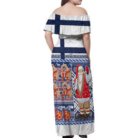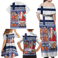 Yule Goat Joulupukki Finnish Christmas Family Matching Off Shoulder Maxi Dress and Hawaiian Shirt Scandinavian Pattern