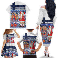 Yule Goat Joulupukki Finnish Christmas Family Matching Off The Shoulder Long Sleeve Dress and Hawaiian Shirt Scandinavian Pattern
