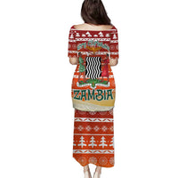 Zambia Christmas Puletasi with African Animals Tree Snowflakes and National Emblem Design